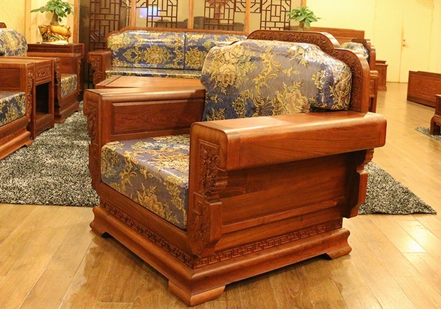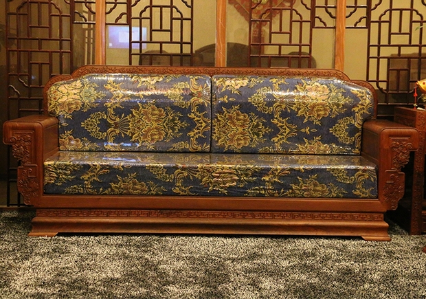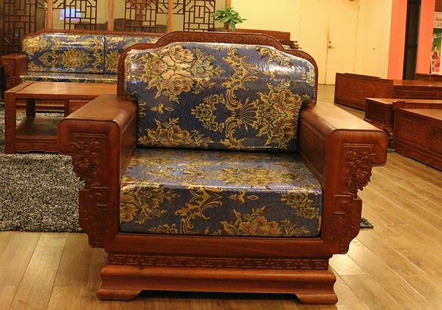 從未有過這樣一種感受,也許就有這樣一種魔力,如同它的名字給人的感覺一般——花開富貴,嬌貴卻不顯嬌氣的身體,美麗但不覺艷俗的氣質,在那矮矮敦實的椅面之上,添上的那一舒適的軟墊,更覺秀氣端莊,其上雋繪有的花紋典雅大方,紋路筆觸艷麗,幅畫于沙發的前端,再配上其內嵌布料中略帶寶石藍的顏色,整體仿若已經融為了一體,格調款式實為為當下現代家具風格所契合,無論是擺放在家中,還是比較正式的辦公、會議場所,都是一處極為不錯的選擇。它不僅具備了東方撫媚、婉約、綿柔的風格氣質,也涵蓋了西方家具中所強調的講究舒適簡約以及能夠跟隨時代潮流發展而作出的華麗蛻變的時尚之美,是一款別具特色而“秀外慧中”的中式紅木古典家具。