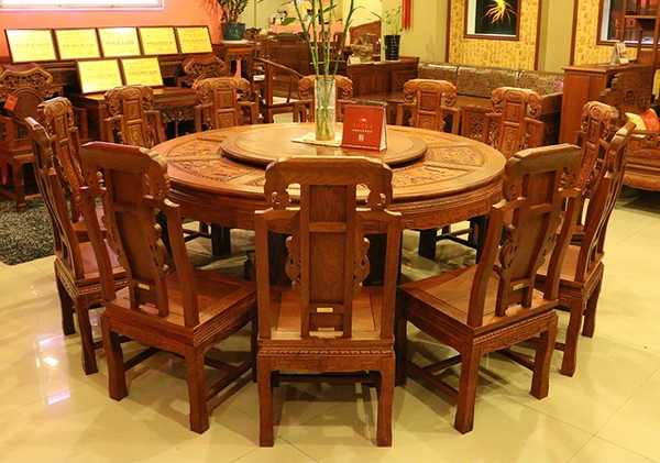 插花與志成紅木餐桌束腰以及餐椅椅背等處的雕刻花紋相得益彰,瞬間讓整個餐廳亮麗起來,讓人不得不贊嘆主人的品味......